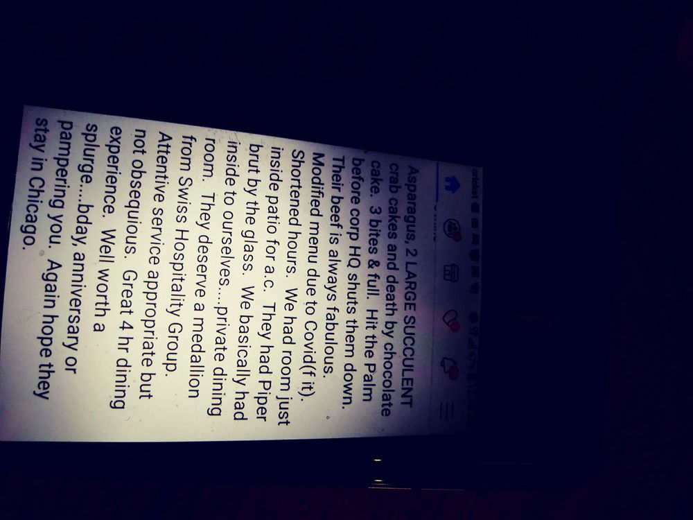 Notable dishes include the Wagyu bolognese, flavorful sea bass, and decadent desserts like the crème brûlée and Zeppole's. The cozy ambiance and friendly staff create a welcoming atmosphere for diners looking to enjoy a memorable meal. While some customers found the prices to be on the higher side, the quality of the food and overall experience at The Palm - Chicago makes it a worthwhile dining destination. Cheers to a delightful dining experience at The Palm!